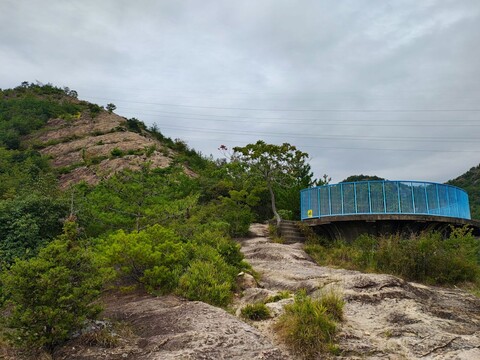 鹿島神社の大駐車場にある車はまばらで、曇った空から時折小雨が降る。空気はジメジメとして思ったより暑い。かしわ餅のお店が並ぶ参道を歩き、鹿島神社の裏手から登山道を登る。たいして歩いてもいないのに汗が吹き出してくる。稜線に出て立ち止まると、心地良い風が吹いている。あいにくの曇天のせいか、昼過ぎという時間帯のせいか、ハイカーの姿はまばらだ。