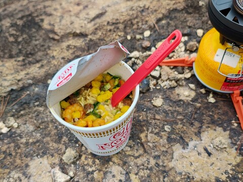 鷹ノ巣山のピークから、南に伸びる特徴的な尾根「馬ノ背」を下る。急な部分を通過して一休みする。平らになった岩に腰を下ろして、お湯を沸かしてカップ麺を食べる。残りのお湯でコーヒーを淹れて飲む。こうして岩肌に腰掛けて、ただそこに座っていると、少しだけ大地との一体感を感じる。